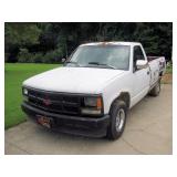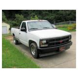 1993 Chevy Cheyenne ½ ton pick-up truck, automatic, engine turns over, bed liner, some rust, suitable farm or firewood truck; nice maple dining table w/ 6 chairs & china hutch; 3-pc. bedroom suite w/ full bed, dresser & chest of drawers; king-size bed floor frame w/ box springs & mattress; 2 twin-size box springs; loveseat hide-a-bed (less mattress); 2 couches; entertainment center; Lowery organ; wooden cabinet; 3 rocker-recliners; footstool; 2 matching doughboy end tables; octagon end table; metal folding table; what-not shelf; 3 sets of metal shelves; shelving; shoe shelf; over-the-door shoe rack; clothes rack; pole rack; pole lamp; hanging wooden lamp; 2 hanging lamps; table lamp; record rack on wheels; TV dinner trays on cart; mirror; clock & sconces set; clock; some pictures & frames; 5 Morgan silver dollars (1879, 1879-S, 1883-S, 1890-O, 1901-O); 1922-S Peace silver dollar; Norge freezer; Maytag dryer; Hoover heavy-duty upright vacuum; VHS player; electric iron; Panasonic microwave w/ turntable; West Bend wok; Mr. Mixer; coffeemaker; toaster; other appliances; Admiral am/fm radio; elec. weather station; pressure cooker; pots & pans; cake stand; glassware; candy dish; Pyrex dishes; mixing bowls; Jello molds; Tupperware; kitchen helpers; cookbooks; kitchen stepstool; collection of Avon bottles (some unopened); 1981 IU championship newspaper sign; 1987 IU championship sun catcher; Hollywood books & memorabilia; Hollywood poster reproductions; lots of condensed Reader's Digest books; several books; CD's (swing, classical); 8-tracks; 8-track player; Kodak "Star 935" camera; needlecraft works; 5' Christmas tree; Christmas decorations; wrapping paper; hangers; hats; towels; blankets; telephone; typewriter; 2 power strips; 2 pc. of Aeropak luggage; 12 1/2' long Bruno stair lift (350 lbs. cap.); wheelchair; transport chair; invalid supplies; traction brackets; cushions & wedges; NordicTrack elliptical stepper; MCA Sports exercise bike; Ashland bench grinder (brand new); B&D finishing sander; Craftsman leaf blower; 8' aluminum ext. ladder; two 6' step ladders; 3' step ladder; pair of sawhorses; buck saw; hack saw; saws; hand sickle; pruners; axe; small vise; heavy-duty extension cord; extension cord; small set of tools; moving cart; 5 large trash cans; rakes; some yard tools; garden weasel; K-gro lawn fertilizer; hose & hose reel; small amount of firewood; picnic table frame; good swing on frame; hammock; bug zapper; green golf bag & cart; blue golf bag; poker chips; Coleman coolers & thermos; glass insulators; and many other items too numerous to mention.