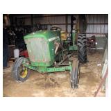 John Deere 2010 with power steering, gas, 3-pt. hitch, in running condition; New Holland "452" 3-pt. hitch 6 ½' flail mower; good King Kutter 3-pt. hitch 6' rotary mower; Danuser 3-pt. hitch 12" post hole digger; J.D. Model L manure spreader; J.D. 3-pt. hitch 2-bottom 14" plow; J.D. 7' pull-type disk; 3-pt. hitch 6' grader blade; 3-pt. hitch bale spear; 7' field double roller; 2-section harrow; grass seeder for draw bar; Task-Handler rear-tine tiller; old Atlas front-tine tiller; Craftsman 1 1/3 hp. 2-speed 12" band saw in ex. cond.; like new Tractor Supply elec. fence charger (20-mile range); bench grinder; kerosene heater; 2 gal. pump sprayer; 2 wheel barrows; metal watering tank; several used wood & steel fence posts; 8 or more metal farm gates, various sizes; barbed wire; fencing; 20 or more metal chicken feeders; chicken waterers; 2 wooden coops; calf bottle; approx. 50 sheets of used metal siding, some painted, various sizes; stacks of lumber, various sizes; log chains; hand & garden tools; tool boxes; old 3" vise; shop tools; wrenches; pipe wrenches; sockets; hammers; screwdrivers; several cans of nails & bolts; grease guns; truck tool box; 9' ladder; J.D. 12.5 hp riding mower for parts only; J.D. riding mower for parts only; 1979 Ford Grenada, no title, not running.