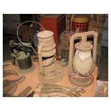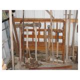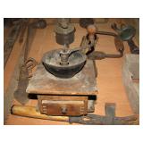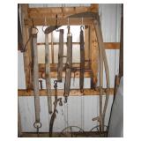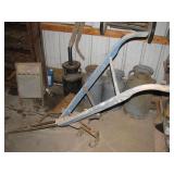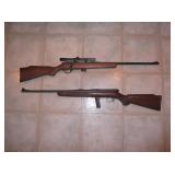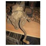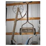 S. S. Kresge "Squires Bingham" model 20 semi-auto .22 cal.; Marlin model 25 bolt-action .22 cal. w/ micro-groove barrel & 4x scope; tin Purina Chows sign; Shell feed sacks; iron wheels, various sizes; platform scales; brass-front scales; antique arm scale; milk bottles, incl. ½ gal. Salem Creamery; old cream separator; 10-gal. & 3 5-gal. milk cans; stone jars & #2 crock; egg basket; strawberry carriers; lard press; hand-crank corn sheller; 2 shucking pegs; 2 scythes; push reel-type lawn mower; hand laying-off plow; horse drawn 3-shovel plow; single-trees &neck yokes; antique dehorners; one-man saw; broad axe; cant hook; draw knife; 3 or more wooden planes; old hand tools of various kinds; antique oil can; oil spout bottle; shoe last; tub; grindstone; antique bowls; antique dishes; many cut-glass pieces; 13 cake stands; 10 glass egg plates; lots of dishware and glasses; 2 quilt tops and quilting material; bedroom suite w/ full long bed & vanity dresser & chest of drawers; bedroom suite w/ full bed & dresser; 2 cedar chests; sofa & chair; bent wood rocker; china hutches; coffee table; 6-legged table; 2 stand tables; old wooden cabinet; what-not shelves; Fire-Fyter safe; GE 20 cu.ft. freezer; elec.organ; brand new VCR; old iron kettle for flower pot; radio flyer wagon; lots of Christmas decorations; fruit jars, some blue; walker; and many other items too numerous to mention.