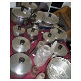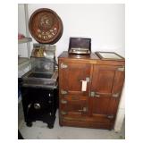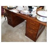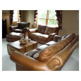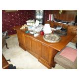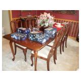 Fine Home Furnishings: leather furniture w/ nail head trim incl. sofa, Jasper Cabinet lighted curio, Amish made cherry DR table w/ 1 leaf, 8 chairs and buffet, marble top plant stand, cherry sofa table, loveseat and chair w/ ottoman, floral sofa and loveseat, Whalen oak desk and oak desk w/ hutch top, faux leather map coffee table/trunk, oak dining table w/ 2 leaves and 6 chairs, 3 piece entertainment center, corner lighted curio, pr. wing chairs, end tables, iron base coffee and end table w/ glass top, lamps incl. floor and table, faux leather foyer chest, 4 black front porch rockers, tapestry, baker’s rack, Amana Commercial Quality electric dryer, GE washer, outdoor patio furniture, Cavalier vintage oak ice box, twin BR set incl. bed, chest of drawers, night stand, small chest and desk, full/queen BR set incl. F/Q headboard and full mattress, dresser w/ mirror, nightstand and chest of drawers, costume jewelry, Precious Moments dolls, kitchen items incl. bread machine, Kitchen Aid compact food processor, Pfaltzgraff “Amalfi Classic”, Royal China “Currier & Ives”, Royal Limited “Holly Holiday” china, vintage Hull vase, stemware and Reverware pots and pans, pr. woven top bar stools, golf items, linens, faux florals, luggage, iron plant stand, iron pot rack, Char Broil Bandera smoker, MTD snow thrower, weed eater, B&D trimmer, garden tools, storage cabinet, hose and reel, pr. cement urns, holiday decorations, DVD’s, CD’s, VHS, electronics incl. Onkyo receiver, Infinity speakers and TV’s, Vintage Singer sewing machine, Ironrite mangel and so many more treasures!