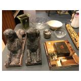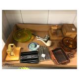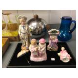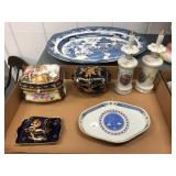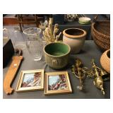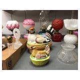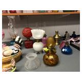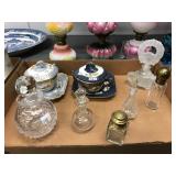 Hand painted china, Waterford crystal, walking sticks, Cobalt and Vaseline glass, dresser trays, mantle and wall clock, Mary Gregory glass, 7 early miniature oil lamps, 11 Victorian powder sugar shakers, 2 Staffordshire hen on nest, ladies beaded bags, Art Deco smoking items, Ginny doll and outfit, modern lamps, Art Deco lamp, wrist and pocket watches, Charles Hubert Paris gents wristwatch, slag glass table lamp, jewel studded brass umbrella stand, China services including Minton, Race car collectibles including Burago, Hot Wheels, Mira, Maisto, Luftwaffe and Panzer Leader Book case games, quilts, Wallace Nutting prints, Maxfield Parrish prints, 2 piece candleabra, etc.