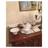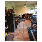 Pair East Lake chairs, buffet, credenza, dresser & mirror, King size head & foot board bed set, 2 small chests, computer desk, Buffett, set 4 matching chairs, large curio cabinet, table & 4 chairs, area floor rugs, Ultra glide XL, leather top executive desk, Singer Sewing machine, pair antique chairs, small lamp table, mosic tile coffee table, combo table w lamp, full bed, 2 & 4 drawer file cabinets, leather desk chair, pair recliners, bookcases, Ethan Allen drop leaf table like new side x side Refrigerator, chest style freezer, garage freezer working Crystal: Waterford, Fostoria, Candlewick, Rosepoint, early american prescut; china:Delpf Blue, R S Prussia, tea set, Wedgwood Jasper, kitchenware, small kitchen applicances, Kitchen Aid mixer, linens, Swiss Cuckoo clock, lots of canning jars, crystal lamps, Waterford lamp, "Bounty Waters" stamp & coin framed, artworks, card tables & chairs, Christmas, office supplies, Grannyounts orginial lithograph, wheelchair, walkers, medical oxygen tanks Ladies St Johns clothes, purses Concrete & inlaid tile round table & benches, patio table w/4 chairs, plants, wind chimes, Metal Shed Garage with tools, hand tools, garden tools, chain saw, electric pole saw, wheelbarrow, garden cart, Cedar wood bar & 2 stools, wood chests, large chest, shop vac, speader, coolers, floor scrubber, yard chairs, large wood work bench |