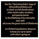 EdmondEstateSales.com Contact: Matt McNeil Phone: (405) 820-2814 Email: Oklappraiser@aol.com Website: www.OkcEstateSales.com EstateSale.com ID#: 1540 View company information and listings |