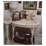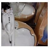 SUNDAY SALE - 30% TO 50% OFF. It's Grand here in Grand Prairie! You won't believe all the wonderful collections in this home of an antique dealer and avid collector of all the good stuff! Have you looked for R. Atkinson Fox Prints, cast iron door stops, antique glass and kitchenware, toys, Breyer toy animals, children's toy dishes, children's chairs and stools, antique toothbrush holders, many styles of wall pockets, costume jewelry, handpainted Noritake Art Deco dresser dishes, PYREX, linens - quilts, camp blankets, 1950's table cloths, etc.; Roseville, McCoy, Frankoma and Hull pottery; furniture - matching pair of Thomasville sofas, mid-century modern Dillingham dining set, mid-century modern cabinets to a George Nelson Omni system and mid-century end tables; concrete yard art and benches and a concrete fishing boy and much more.............but you just can't find the good stuff anymore? Well that's because it's all here in Grand Prairie. You will also find a 1950's inspired turquoise and chrome dinette set (this is a reproduction) and there is a small tear at the top corner of one chair, and the seat covering has a split in the bottom of another chair; antique grandfather clock; a McDougall Hoosier-Style cabinet; a coordinating golden oak kitchen storage cabinet; a golden oak secretary with bent glass storage area and drawers; an Empire curved glass display cabinet with a coordinating Empire mirrored side board; set of four quarter sawn oak chairs with leather padded seats and small round oak top table, antique flat top trunk; full set of Pfaltzgraff Ocean Breeze Pattern dinnerware; full set of Royal Doulton Blueberry pattern dinnerware; Watt pottery; old kitchen storage jars; 1970's inspired queen bedroom suite, one fabulous iron bed, several oak chairs, end tables and rockers, wicker side table and plant stands; a Bradley & Hubbard table lamp with slag glass shade; 1950's Gazelle Lamp; along with several pairs of electric Alladin Lamps (with the finials); and an extensive collection of antiques and collectibles collector books. Note that for the first time this summer we are starting the first day of the sale on Thursday evening, from 6-9PM, to give everyone a chance at the first day. |