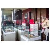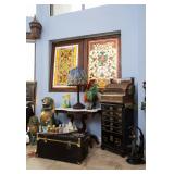 There is a great antique fully functioning cash register, beautiful vintage stained glass panels, metal foo dogs, vintage Murano glass, Lladro figurines, wood carving from Africa, and more.