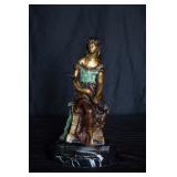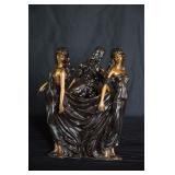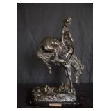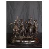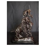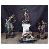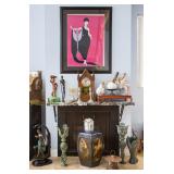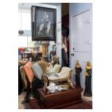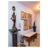 There are a large collection of bronze sculptures by artists such as, Moreau, Chiparus, Bruyneel, Remington, Fraser, and Icart.