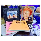 There are a number of TV and movie memorabilia items. There are multiple autographed Seinfeld scripts, multiple beautiful autographed photos of Estelle, multiple vintage playbills, a Seinfeld cast and crew bag, multiple autographed theatre scripts, a 14th Chicago International Film Festival poster signed by Skrebneski (Photographer), a Poster of Bette Davis signed by Skrebneski (Photographer), a photo of Sarah Bernhardt autographed by Sarah Bernhardt in 1913, an autographed photo of Marlene Dietrich, an autographed photo of George Montgomery, and multiple autographed books.