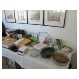 Electric leather loveseat, sofa, dinette tables & chairs, china cabinet, hall tree, game table, leather rocker/recliner, library desk, curio cabinet, bookshelves, rockers, cabinet, coffee & end tables, king & queen bedroom set, queen bed, bar stools, desks, pictures, mirrors, lamps, TV’s, sewing machine, area rugs, jewelry cabinet, lots of books, full kitchen, linens, men’s clothes, patio sets, refrigerator, 4 person hot tub, nice accessories, garage. Nicely furnished and very clean home in Peridia.