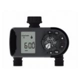 Orbit 2-Outlet Hose Faucet Timer. The Orbit 1-Dial 2-Outlet Hose Faucet Timer will turn your hose faucet into a programmed sprinkler system in minutes. No more dead plants because you forgot to water them. No more soggy lawns because you forgot to turn the water off. Just set the timer and go. With a large digital display, easy program dial and simple controls, programming is fast and easy. Built with high quality materials and water-resistant construction you can count on many years of dependable service. In opened retail package. Retails for $39.97. |