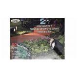 Solar Spot Lights LED 50 Lumens All Weather Ground 8 Hours. Up to 8 hours of operation and run time (rates at peak lumens / average sunny day) Light output: 50 lumens each Glass lens Includes 25 ft wires Textured black finish All-weather durability / Die-cast metal fixture and ground stake Versatile 7.6 m / 25 ft of extra wire connection wire / Easy connect Long-life, non-replaceable LED / Warm tone natural light Rechargeable AA batteries included / Each fixture 3 x 1500 mAhr / AA Type NiMh. Item is in original packaging. NEW! Retails for $59.99. |