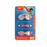 SpeedoUSA Junior Goggle Set Pink Purple, 3 Pack, Ages 6-14. The straps are fully adjustable for maximum comfort and performance Goggles are equipped with UV Protection to help block the sun's harmful UVA and UVB rays Anti-Fog lenses resist fogging for clear underwater vision Speedo Triple Goggle Pack for ages 6 to 14 years. NEW! In opened retail package. Retails for $15.47. |
