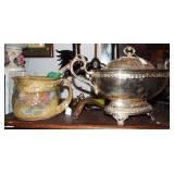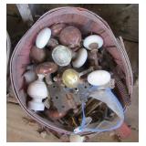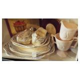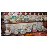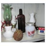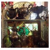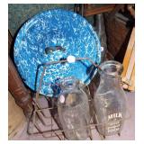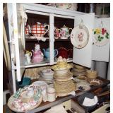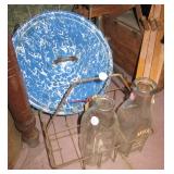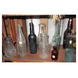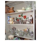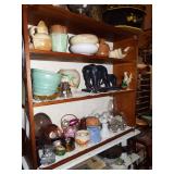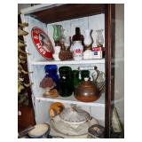 Milk Bottles Old Glass Bottles of Various Kinds Hull Pottery Several Antique Cups & Saucers Several Pieces of Antique China Cobalt Blue Glass Glass Decanters Tea Pots Ruby Glass Cake Plates Milk Glass Amber Glass Fire-King Jadeite Glass China Plates & Bowls Clay Mixing Bowls