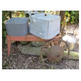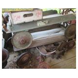 Vintage D. Gottlieb Co Jumping Jack Pinball Machine Gas Pump Antique Fire Hydrant Old Oil Cans Antique Wood Washing Machine w/ Wood Tub Velvet Kind Ice Cream Metal Sign Signed Oil Paintings Antique Wood Wagons Planter Jr. Planter Cast Iron Grates Wonderful Selection of Antique & Vintage Costume Jewelry Antique Clocks Milk Cans Old Horse Tack Antique Bird Cages & Stands Galvanized Dairy Boxes Wood Barn Pullies Antique Rail Sleds Primitive Clothes Drying Rack Antique Scales Primitive Wood Butter Churn Cast Iron Corn Huskers Cast Iron Sadirons Primitive Washers Several Antique Crocks Old Wood Crates Old Wash Boards Galvanized Watering Cans Hay Trollies Antique Roper Porcelain Cook Stove Parking Meters Antique Fans Old Copper Items Antique Dress Form Several Cast Iron Plant Stands Enamelware Vintage Hat Pins Cast Iron Smoking Stand Sterling Spoons Old Advertising Items Antique Spool Holder Antique Locks Antique Reel Mowers Wood Apple Crates Old Stove Top Cake Box Several Old Linens Advertising Burlap Sacks Jewelry Boxes Several Tins Windmill Stand w/ Pump Antique Prints & Pictures Several Pieces of Pewter Items Old Cast Iron Stands