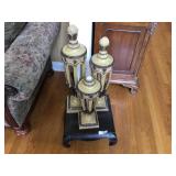 Auction is now live for bidding, please keep watching as we will be adding lots daily to this auction. 1 Decorative bowl and balls 11.5" x 8.5" See photos for details 2 Upholstered arm chair See photos for details 3 Framed Urn print 22.75" x 29" 4 Urn style table lamp w/ leopard print shade see photos for details 5 Fairfield Cherry & Leather office chair Camel colored and ready to go. Needs a little cleaning but otherwise in great condition! 6 Carved Pedestal / plant stand see photos for details 7 Cherry Office Suite by Hooker Does NOT include computer or it's componants. Approx 71" x 24" x 83" See Photos for details 8 Elegant table lamp 30". See photos for details 9 Metal side chair See photos for details 10 H.M Richards INC Upholstered cherry sofa Verry comfortable! 95" x 36"See photos for details 11 Framed Botanical print 30" x 41" See photos for details 12 Ratan "suitcase" side table w/ 3 drawers See photos for details 12 Commercial Infrared TRU Heat Char-Broil Grill See photos for details, Propane Gas grill, no tank included 13 Lot of 5 glass items See photos for details 14 Large beveled gilt mirror See photos for details 15 Asian style plant / urn stand w/ décor See photos for details 16 Tall faux ficus with urn See photos for details 17 Asian style vase 14.75" tall. See photos for details 18 3 pcs décor Faux orchidSee photos for details 19 Cherry Queen 4-poster Federal style bed American Drew--Made in the USA. Includes headboard, footboard, and rails. Does not include comforter. See photos for details 20 Cherry Federal style Chest on Chest American Drew--Made in the USA 7-drawer. Missing one handle that is easily replaced See photos for details 21 Cherry Federal style Dresser 11 drawer American Drew--Made in the USA. Missing one pull that is easily replaced. See photos for details 22 Cherry Federal style mirror American Drew--Made in the USA. 46.75" x 32" See photos for details 23 Cherry Federal style night stand American Drew--Made in the USA. 24 Cherry Queen Anne style upholstered bench Velour covering. 45" x 18" See photos for details 25 Horizon Club Series treadmill It's not too late to start your New Year's resolution! Finish the year strong with this CST3 AirCell Technology machine. Complete with safety mat. See photos for details 26 Tall table lamp See photos for details 27 Meanthe Bella framed print See photos for details 28 Tall palm style accent lamp See photos for details 29 "Olive" & "Orchid" money framed prints See photos for details 30 Microsuade brown sofa see photos for details 31 White pressboard Bookshelf See photos for details. 32 Floor lamp w/ glass shade see photos for details 33 Table lamp see photos for details 34 Abstract paint on canvas 54" x 27" see photos for details 35 Textured print on canvas 40" x 30" see photos for details 36 Tennessee Titans Curtains Valance is 72", red accent curtains 82" 37 PDP 5 piece Accustic Drum set w/stands 5 drums, foot pedal, and two cymbol stands. see photos for details. 37 Pearl snare drum w/stand & bell set Comes with the case. See photos for details. 38 Zildjian ZBT Crash Ride 18" cymbal see photos for details 39 Zildjian ZBT HiHat Top & Bottom 13" cymbal see photos for details 40 Zildjian ZBT Splash 10" cymbal see photos for details 41 Starfinder Telescope by Meade see photos for details 42 Stanley Maple Twin bed w/twin trundle (a) Does not include mattresses and box springs. See photos for details 42 Stanley Maple Twin bed w/twin trundle (a) Matress and box spring & bedding is not included 43 Stanley Maple 5 drawer dresser See photos for details 44 Cuicina Toscana gift box set, never opened see photos for details 45 Lenox Poppies on Blue everyday dishware A 30 pcs (place setting for 6). Cone cup is chipped on the lip 46 Lenox Poppies on Blue everyday dishware B 30 pcs--missing one cup, has one extra bowl. One cup has a chip as does one bowl. see photos for details 47 Lenox Poppies on Blue everyday dishware C 7 pc serving set. Butter, cream/sugar, veggie bowl, covered bowl, serving bowl, and platter . No chips or cracks in this lot. Goes from freezer to table, microwave safe, exceptional quality for everyday place setting. 48 Heritage Villiage Collection North Pole Series 18 pcs see photos for details 49 Heritage Villiage Collection Dickens' Series 18 pcs see photos for details 50 51 Aspen White Oak 4 drawer dresser 36" x 18" x 43.5" see photos for details 52 Upholstered accent chair see photos for details 53 Mirror top and metal side table w/ accent lamp 13" x 13" x 26.5" 54 Glass table lamp 25" tall see photos for details 55 Pencil numbered framed print 29" x 36" see photos for details 56 White ceramic bowl Dalli Handmade in Italy see photos for details 57 Gold leaf oval mirror 19" x 27" see photos for details 58 Iron designor banquet lamp 34" see photos for details 59 Side server with granite top 38" x 12" x 30" black granite top. see photos for details 60 Fritz and Floyd and more! 17 total pcs 10 pcs are Fritz and Floyd pcs. see photos for details 61 11pcs home decor crystal and more See photos for details 62 Large lot of glass items See photos for details 63 Clear glass lot see photos for details 64 Nice lot of Oneida silver plate, 10 pcs see photos for details 65 Great lot of multicolor tableware, 6 pcs Nice cobalt blue pitcher, hand glazed platter made in Mexico, and more! see photos for details 66 Large lot of holiday tableware! see photos for details 67 Black lounging Folding chair see photos for details 68 Nostalgia Stainless Chocolate fondue fountain see photos for details 69 Blue Satin parfait glasses Add some fun to those late summer ice cream nights. See photos for details 70 Lot of table linens & birdhouse décor see photos for details 71 Nice lot of colored stemware, 9 pcs martini set, champagne, and wine glasses. see photos for details 72 Marquis by Waterford Crystal Hurricane vase 10" Tall perfect condition see photos for details 73 Lennox Mount Vernon China 4 place setting 20 pieces, 4 tea cups, 4 