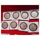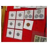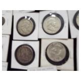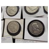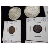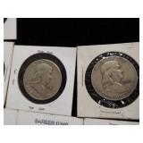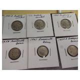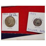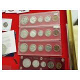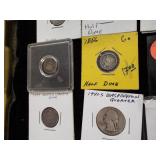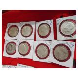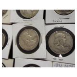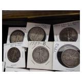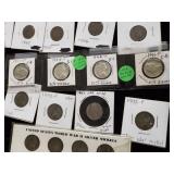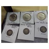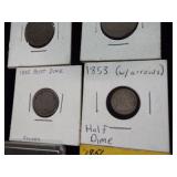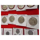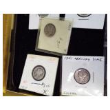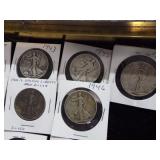 The coins are 11 walking liberty halves, 16 1964 Kennedy halves, 14 Franklin halves, 5 barber dimes, 7 mercury dimes, Roosevelt dime, 5 40% kennedy halves,1835 bust dime, 1856 half dime, 1852 3cent piece, 1891 seated liberty dime, 1865 & 1867 2 cent coins,1955 wheat cent proof, 23 indian head pennies, 19 silver war nickels, 11 buffalo nickels, 1940,1951 & 1945 year sets, 1961 Franklin proof set, 2 peach dollars, 2 morgan dollars, jar full of wheat pennies, and still more coming.