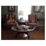 Pennsylvania House cherry dining room furniture, multiple cherry wall units and armoires, cherry and pecan bedroom furniture, wicker furniture, including an antique wicker chaise and rocker, living room furniture, clothing, jewelry, household items, antique and decorative objects, books, tools, holiday decorations, Billy Ray Cyrus and Miley Cyrus autographed guitar. This is just a partial listing. |
