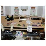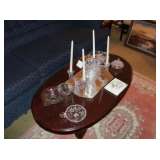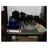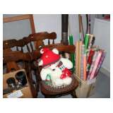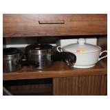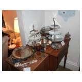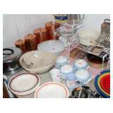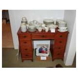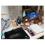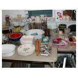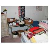 This house is full, quality furnishings, household, antiques, etc. Blue pattern sofa; swivel rocker; misc. stuffed chairs; Victorian settie; coffee & end tables; cherry corner shelf; cained rocker; round walnut table; misc. small tables & stands; TV; stereo & misc. electronics; maple desk; lamps; wall art & prints; treadmill; Ethan Allen cherry china cabinet; Maddox secretary; Case clock; dining table w/6 chairs; sets of China; lots of glass pottery & porcelain; S/P flatware; full kitchen assortment includes: pots, pans, dishes, small appliances, etc.; books; dropfront desk; 5pc. cream colored bedroom set; bedding & linens; twin bed; misc. chests & dressers; jewelry; computer desk; sewing & craft supplies; Christmas & holiday decorations; keyboard; space heaters; records; CDs & DVDs; lots of misc. small items; knick knacks, etc.; misc tools.