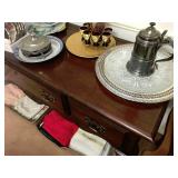 Please note extended hours for this sale! Art, Antiques, China, Crystal, Clothing (M/W), Collectables This week we have a great sale in the heart of the “Preston Hollow” neighborhood in Dallas packed full of antiques, art, and collectables. We also turned the garage into a “Bargain Barn” full of antiques, collectables and vintage items (some needing a little love). We have rooms with men’s and women’s clothing, jewelry, purses and shoes. We have lots of bedding, fabulous linens and quilts. We are also selling the chandeliers along with all the appliances. This house is packed with items from three generations and dating from the late 1800’s, so arrive early for the best selection. We will limit the number of people in the house, and we’ll distribute sequential numbers to those who are waiting to enter. Thank you for your patience! Entry / Living Room / Checkout Area – features Victorian items, vintage items, and awesome collectables. We have a Mahogany Buffet with large drawers and doors from the 1940’s in excellent condition. We have a Victorian hand-carved Walnut chair covered in red velvet from the 1880’s. We also have two matching 1940’s Victorian Couches in fabulous condition covered in peach velvet fabric just waiting for a new home. We have an 1880’s Eastlake Oval Table in Walnut with a marble top. We have a 1940’s Duncan Phyfe Mahogany Sofa covered with a beige stripped fabric in excellent condition. We also have a Victorian Arm Chair covered with a beige fabric with pink roses matching the style of the two Victorian settees. We also have a small Victorian Side Chair with an awesome needle point seat. We also have a small Mahogany Occasional Table with two drawers and a shelf in excellent condition. We have a 1950’s Mahogany Coffee Table with glass top. We have a great 1940’s Duncan Phyfe Mahogany China Cabinet in excellent condition with glass doors. Inside the Duncan Phyfe China Cabinet we have some fabulous Fostoria June Azure Blue and White Stemware in two sizes, plus salad plates’ and a pair of candle sticks. We also have some vintage Plates from France and some vintage Crystal Stemware. We have some vintage toys; a Cessna/180 Sport Plane by Hobby Kits and a vintage AA NC-160 Metal Plane and some other toys ask at desk. We have a framed park scene painting by Poulichen and a large framed painting by Oscar T. Navarro TBA Painting from Goya. He was trying to preserve the past by portraying traditional rural life in the Philippines. There are other great framed art painting throughout the house. We have some nice vintage costume jewelry; bracelets, earrings, necklaces and pins. There are some vintage eye glasses, lots of vintage keys, some perfume and some vintage items in the case. Please ask for help. We have a 1940’s silver plate coffee and tea set with sugar, creamer and large oval tray. There are two different unique crystal containers, a crucifix and a music box. We also have some unique After Five handbags along with two identical small mahogany end tables with shelves. We have four Royal Dalton Lady Figurines along with lots of pink and ruby red glass vases and bowls. We have awesome pink bowls with fluted edges in pristine condition. We have some small Wedgewood pieces. There are lots of items from Germany, England and France. We have awesome china and porcelain lamps, interesting wall art and hard to find vintage glass pieces. Come early to get the best selection. Dining Room – features a magnificent room of antiques and collectables. We have a lovely 1940’s Mahogany Duncan Phyfe small Drop Leaf Table packed full of the 1930’s & 1940’s glass collectables. We have a fabulous China Cabinet in Walnut from the 1920’s with Glass Front and Sides with one large glass door in great condition. We have an awesome Mahogany inlaid Side-by-Side China Cabinet and Secretary Desk from the early 1900’s with a Dragon design inlay. This piece is in awesome condition. We have a great Cherry Grove Buffet in excellent condition. (This piece matches the Hutch in the eating area). We also have a great oval Cherry Wood Dining Table by Cherry Grove it has two extra leaves and comes with the pads. There are six matching chairs, two are arm chairs. (This table and chairs match the buffet in dining room and the hutch in the eating area). We have a great vintage set of Royal Doulton China England. There are dinner plates, luncheon plates, salad plates, desert plates, cups and saucers, oval platters, sandwich plate, gravy, vegetable bowl and demitasse cups and saucers. There are lots of napkins and tablecloths in great new to slightly used condition. We have lots of silver plate candlesticks and from the 1930’s and 1940’s solid green and solid ruby red glass dishes and glasses. We have a vintage bench with extra fabric under the cushion and another set of vintage Royal Dalton dishes called the Portland. This set has dinner plates, salad plates, cup and saucers, cream and sugar, small desert bowls, soup bowls, gravy bowl with plate, platters and vegetable bowls. We have two floral framed paintings signed JL. We have lots of sets of flatware, most are plated and one set is over 100 pieces from Thailand. There are lots of silver plate trays and serving pieces. We have a large set of dishes by Homer Laughlin made in USA. We have small sets from Bavaria, England by Alfred Clough and six great crystal stemmed water glasses. There is a small mahogany two-door storage side buffet or serving station in great condition. We also have lots of serving utensils along with odds and end forks and spoons in silver plate. There are a few cut crystal pieces as well. Come early for the best selection. Kitchen / Eating Area – features a 1940’s Duncan Phyfe Drop leaf Table and six Mahogany Ribbon Backed Chairs of which one is an arm chair. We have an awesome Cherry Grove Lighted Cherry Wood China Hutch with glass shelves and plate grooves along with the bottom stor