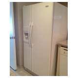 Whirlpool, wht, side by side , refg/freezer, ice maker and water in door. Bedroom Furniture:Beds, dressers, night chest, mirrors, desk,mattress and box Sofa, Lazy Boy Love Seat, tables with wheels, lamps, tall wood book case, sewing machine, trains, computer, Rubbermaid large storage unit,housewares, old dolls, linens, clothes, tools, patio and chairs with matching tea cart, rod iron bench, park bench, pots with tall plants, plus much more CASH FOLLOW THE YELLOW SIGNS |