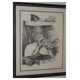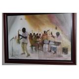 J. Tunaka Signed Jazz Player Watercolor Framed