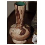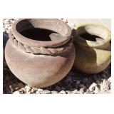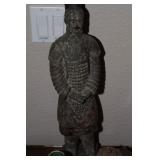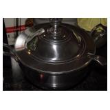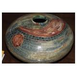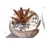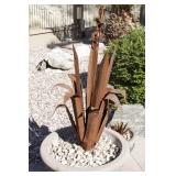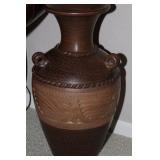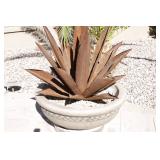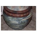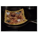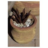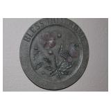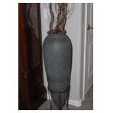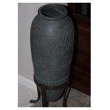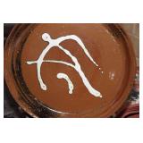 Large Brown Decorative Stoneware Plate on Iron Stand