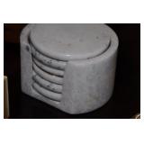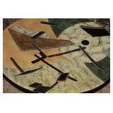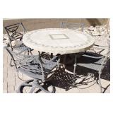 Circular Inlaid Stone Tile Table with Wrought Iron Chairs