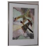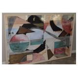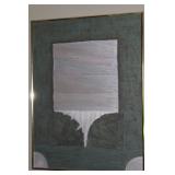 Green and Grey Geometric Relief Painting by Dunlap Framed