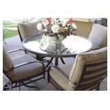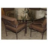 Circular Glass Topped Table with Wrought Iron Base and 4 Chairs