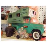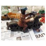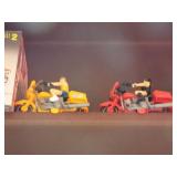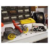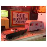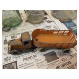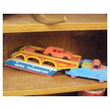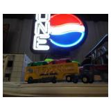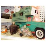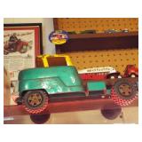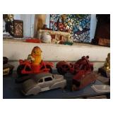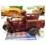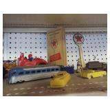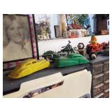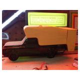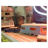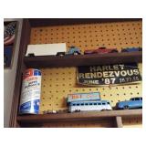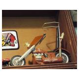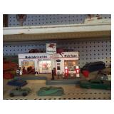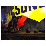 This week we will have a large 35 yr personal toy collection from a local resident. Included will be many large signs one is a Gulf sign from a closed gas station/general store located outside of Kittaning, Pa. We also have an original Eco air machine that still works, a large display case from closed Kimmel Pontiac in Erie,Pa., a Consumer sign from a closed business on 13th & Peach in Erie, Pa., metal milk box, many neon signs, vintage carburetor parts in original boxes, glass milk bottles and carrier, glass pop bottles, vintage motorcycle outfit on mannequin, woman's Schwinn Roadmaster bike with button horn, several other vintage bikes, pop gun, metal lunch boxes including some thermoses, cast iron toys, tin windup toys, Hess and Sunoco trucks in original boxes (some only available to high level employees)Uncle Sam bank, large toy camper collection, Hubley,tootsie toys, Marx, large coke cooler and other collectibles, Indian motorcycle original patches, oval bowed glass picture, cigarette advertising items, Buddy L ,Indian motorcycle tank emblems for 1947 Chief, floorboard mold for 1921 Indian Power Plus, original Indian motorcycle memorabilia collection including cans, wrenches, literature, & money clip, Hubley motorcycle collection, Evil Kneival toys, tootsie toys and Tonka, Indian news letters, and so much more. Larger listing and more pictures closer to the auction. |