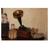 50% OFF EVERYTHING LEFT. Note: TAKE GOOD LOOK AT THE PICTURES TO DETERMIN WHAT IS LEFT IN THE SALE - THESE PICTURES UPDATED ON 10/18/17. Thomas Edison Wax Cylinder Player, King Tutankhamen's Egyptian Throne Armchair, Artwork, Grundig Radio, Sarcophagus, Cameo Wrap Around Victorian Style Sofa Couch and Chairs, Lamps, Display Cabinets, Regency Center Tables Inlay, Pair of Victorian Heart Shaped Velvet Tufted Chairs, Grandfather Clocks, Cuckoo Clocks, Inlay Jewelry Boxes, Music Boxes, Chippendale Style Chairs, Cherubs, Stained Glass Windows, Tapestries, Electronics, Italian Rosewood Inlaid Serving Trays, Knight, Religious Items, Edison Standard Phonograph, Clock Parts, Granfather Clock Parts, Victoria Ceramic Figural Lamps, White Marble/Alabaster Chess Board, Hand Painted Ostrich Egg, Vacuums, Tools, Phones, Records, Tapes, Books, Decorative Plates, Figurines, Decorative Wall Brackets, New Linens in Packages, Custom Curtains, Lighting, Chandeliers, Refrigerator, Washer, Dryer, Lawn Mower, Clock Parks, Portable Air Conditioner, Air Conditioners, House Hold items and so much more. Note: Lots of Custom One of a Kind Inlay Furniture Pieces
