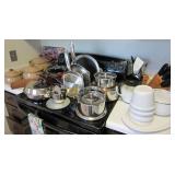 Pots and pans Small kitchen appliances China and stoneware sets large amount of Mikasa crystal Crystal dining accessories large number of kitchen knives APPLIANCES