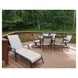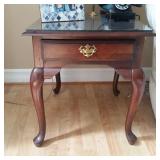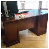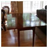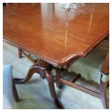 1985 American Drew solid Cherry Table, six chairs, two leaves with matching buffet hutch!