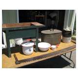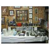 Antiques and Collectibles: oak sideboard; oak chest of drawers; his and hers oak rockers; oak plant stands; large colored Tupperware collection; trunks; Howe scale; Coleman Quick-Lite lamp; Buddy-L grill; Montgomery Wards #28 wood stove; wooden garden cart; bird houses; pocket watches; Marbles hatchet; vintage fishing equipment; hunting knives; large cast iron pot; large Victorian button collection; swan, rock, and shell collections; hundreds of miscellaneous knick knacks; linens; pottery; glassware, and lots more! Tools: LaLervad Danish woodworking bench; 12" Delta planer; 15" scroll saw; 10" Ryobi planer; bench vice; bench grinder; bench sander; B&D table saw; Porter-Cable router; work benches; lathe tools; chain saw; riding mower; Craftsman 10hp 32" snowblower; 4X6 utility trailer; 8ft. picnic table and matching glider; large Compost Tumbler; many hand tools, fateners, and miscellaneous workshop items. Plus, bee-keeping supplies and equipment. Household: Beds; dressers; chairs; night stands; side tables; curio-cabinets; drop-front desk; bookshelves; lamps, pictures; armoire; books, corner cabinet; pots and pans; silverware; towels; hats; jewelry; baskets; lots of miscellaneous items. (This is only a partial listing - still cleaning out house, barn, and sheds!) |