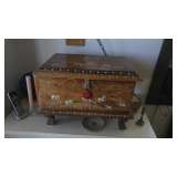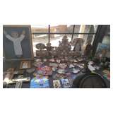 JEWELRY LYONS AND HEALY PIANO BLACK FOREST BEAUTIFUL WALL CLOCK LARGE CUCKOO CLOCK ST ANDREWS ABBEY ORNAMENTS CRUCIFIXES AND ROSARIES DINING TABLE AND CHAIRS CHINA CABINET CURIO CABINET IVORY STORAGE BOX FROM INDIA YARD ART AND OUTSIDE PLANTERS BEAUTIFUL BOHEMIAN GLASS SPACE LANDING NEWSPAPERS FRANCISCAN DISHWARE FANTASTIC ART DECO BAR CARVED WOOD CHAIRS FROM CHINA GREEN CARVED CABINET LOTS OF DEGRAZIA ARTWORK HANGING LAMPS GMUNDEN POTTERY BRASS ANIMALS MANTLE CLOCK EIGHT DAY INGRAHAM CLOCK FORMULA ONE MARLBORO MECHANIC JUMPSUIT KNICK KNACKS AND MUCH MORE