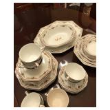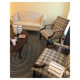 Items for sale: queen ann style furniture: sofa, love seat, dining room set Coffee table and matching end tables table and floor lamps matching blue and white China blue and white kitchen ceramic items bone china tea cup sets Silverplate flatware kitchen items Home decor Hunter ceiling fan Chandelier indoor and outdoor rugs vintage/antique arm chairs tents 26"TV tv stand cat genie foldable table puzzles working stove and dishwasher (cannot be picked up until Monday, please come day of sale to look at and pay for if interested)