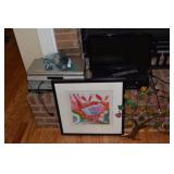 Saturday September 30, 2017 Only 10am-4pm Living Room, Dining Room, Bedroom, Office, Garage, and More! Newer Upholstered Sofa, New Lighted China Cabinet with Mirrored Bottom Doors, Leather Ottoman with Drawers, Side Table, Table Lamps, Demi Lune Console Table, Rug, Accessories, Art, Dining Room Table with Leaves and 6 Chairs, Sideboard, Smalls, China, Glassware, Accessories, Queen Size Bed, Nighstand, Dresser with Mirror, Wardrobe, Desk/Console Table, Small Stool, Ballard Design Style White Desk with Hutch, Plants, Linens for Queen and Twin Beds, Keurig, Toaster, Smalls, White Freezer over Fridge Refrigerator, 24' Aluminum Extension Ladder, Creeper, Hedge Trimmer, and More.
