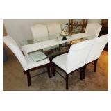 * CONTEMPORARY GLASS TOP D/R TABLE 6 WHITE CHAIR