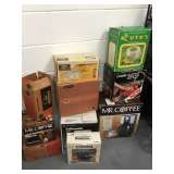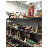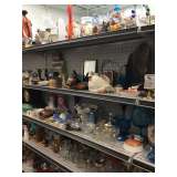 vintage bar accessories kitchen items (blenders, cuisinart food processor, coffee makers, silverware, utensils and more) plates. bowls. cups. glasses pots and pans Vintage costume jewelry (Monet, LC, Eisenberg, Trifari and more) Beautiful vintage and antique lamps ( Gone with the Wind style, French Provincial, oil and more) Large selection of tea cups and saucers, milk glass, beautiful carnival glass and depression glass! crystal pottery brand name clothes (women, men, girls and boys) cook books. history books. sports books. old books. kids books and more Vintage items like... blow dryer, clothes irons, makeup cases, salt and pepper sets, figurines, mirrors, pill boxes and more!! DVDs music CDs cream and sugar sets vases many styles tea pots aprons vintage dress forms large selection of silk scarfs Over 100 fishing reels, poles, tackle box plus more!!