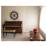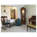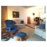 GM Tech Center Area Home filled with solid, traditional furniture, great home decor items, utilitarian goods, and much more. Living Room: Farmhouse Style Console Table, Wall Sculpture, Decorative Items, Coffee Table, Kimball Piano and Bench, Rocking Chair, Wood Magazine Stand and more. Kitchen: Farmhouse Style Dining Table, Woo salad bowls, vintage casserole dishes, Kitchenware, Small Appliances and more. Family Room: Wing back Loveseat, Hammery side table with DuTaylor Rocker w/Ottoman, Wingback Sofa, Hammering Wood Table, 52" Wood Media Cabinet, Wood Coffee Table, B. Hilton Original Art, Various Decorative Items and more. Bedroom 1: American Of Martinsville Bedroom Set, Including: Nightstand, Dresser, Low Dresser w/Mirror, Vintage Sewing Chest, Decorative Items Original Artwork and more. Bedroom 2: Office Desk, T.V Stand, Chest Of Drawers, Loveseat, Wood Side Table, Office Supplies, Color Printer, KDS Flat Screen Monitor, and more. Bedroom 3: Yellow Victorian Bedroom Set w/Twin Bed Decorative items and more. Basement: Mid Century Dining Table, Decorative Items, Including: Frames and Religious Icons, Clothes, Shoes, Purses, Holiday Decor, Four Multi-Color Mid-Century Modern Bar Stools, Mid-Century Yellow Globe Lamp, Cleaning Supplies, Personal Care Products, Books, Art Prints, Vintage Steel Storage Cabinet, Tools and more. Garage: Various Gardening Tools and Supplies