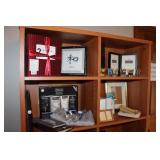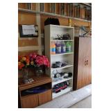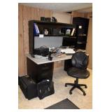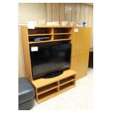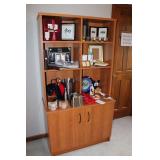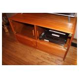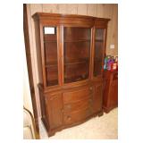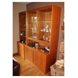 Danish modern 80s era cabinet and hutch w/ glass shelving and lights