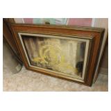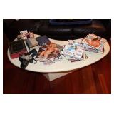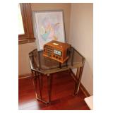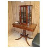 Vintage foldout game table w/ glass and pedestal base, restored,