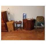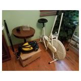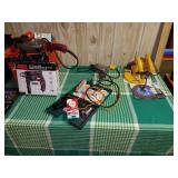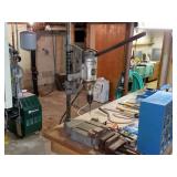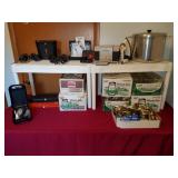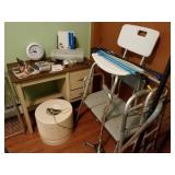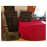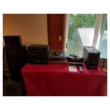 Included: This sale includes stereo components, speakers, a Tasco telescope, Technics turntables, furniture, a vintage Singer sewing machine, tools, a drill press, yard care items, and more!