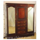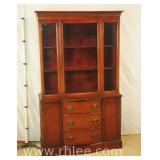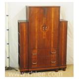 Johnson-Handley-Johnson inlaid art deco cabinet with bookcase sides; 55-2748 - (finish as-is; chip of veneer on base) - 40x15x55.5