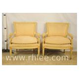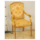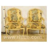Pair of low French style open arm chairs; 55-2718 - (finish and fabric as-is) - 27x23x29