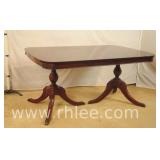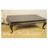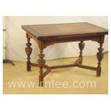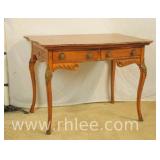Carved oak bronze mounted library table with 2 drawers; 55-2736 - cabriole legs - finished on all sides (finish as-is) - 40x28x30
