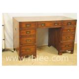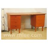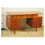 Walnut Danish Modern style kneehole desk; 55-2733 - (finish as-is) - 59x22x29.5