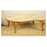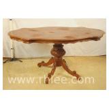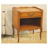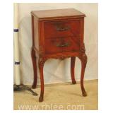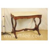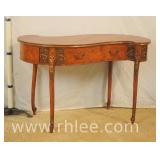 Carved unusual shaped French style vanity with inlaid top; 55-2696 - drawer - cabriole legs - (finish as-is; missing some bead molding) - 46x21x30