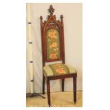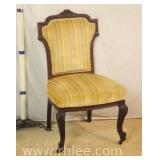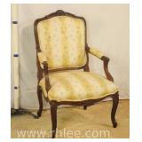 Carved French style parlor chair; 55-2750 - front casters - (finish as-is; stains on fabric) - 20.5x21x35.5