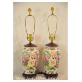 Pair of large floral lamps; 55-2745 - 7.5x7.5.x30