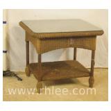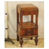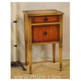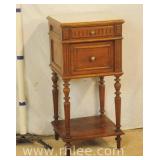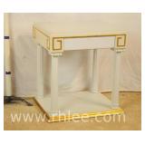 White and gold 2 tier end table with fluted columns; 737-1190 - single drawer - 26x22x28.5